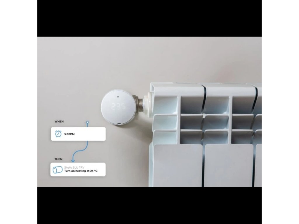 - Jednoduché prispôsobené vykurovanie – Inteligentné plánovanie vám umožňuje zosúladiť vykurovanie s vašimi každodennými rutinami a optimalizovať tak komfort, ako aj energetickú účinnosť. Pre zvýšenú presnosť teploty môže Shelly BLU TRV podporovať externé senzory, ako sú Shelly BLU H&T a pre detekciu otvorenia okna Shelly BLU Door/Window, čo z neho robí všestranný doplnok akéhokoľvek domáceho vykurovacieho systému.